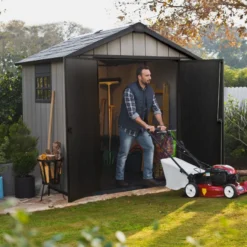 Offrez à votre jardin un abri élégant et durable avec l’Abri De Jardin 5,12m² En Résine Imitation Bois Newton 757 – KETER ! Conception robuste, résistante aux intempéries, sans entretien et au design bois authentique. Idéal pour ranger outils et équipements en toute sécurité.