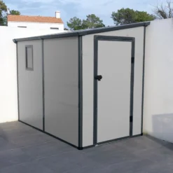 L’avis du spécialiste sur l’abri de jardin adossé en résine gris clair 3,55m² + kit de fondation – JOBU