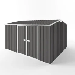 Cet abri de jardin en métal de la marque Australienne Easyshed vous offrira une surface utile d’environ 11m² et un beau volume de stockage grâce à son faîtage élevé qui atteint 210cm. Pourvu d’une grande double porte, l’abri vous assurera un large passage qui facilitera vos allées et venus et vous permettra de déplacer aisément vos objets encombrants comme votre tondeuse, par exemple.