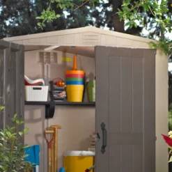 De plus, la large double porte verrouillable de 127,5x171cm offre une facilité d’accès remarquable, surtout avec son seuil bas. Le sol de l’abri est antidérapant, et une possibilité d’ancrage (vis et chevilles non fournies) permet d’augmenter la stabilité de l’abri pour les régions subissant des conditions climatiques sévères.