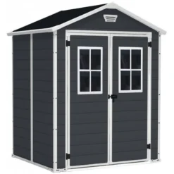 La marque mondialement connue Keter vous propose son abri de jardin Premium 65 DD qui vous offrira une surface utile de 2,33m² pour ranger au sec tous vos outils de jardinage. Dotée d’une double porte verrouillable qui facilitera l’entrée et la sortie de vos objets encombrants, comme vos vélos, par exemple, l’abri possède également deux fenêtres fixes sur la façade pour une atmosphère lumineuse.