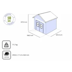 • Dimensions extérieures « hors tout » (y compris les débords de toit) : 186x237cm