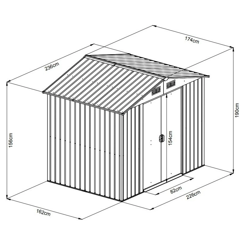 Muni d’une double porte coulissante de 154x82cm, vous pourrez y accéder confortablement pour une utilisation comme garage à vélos, local pour vos conteneurs à poubelles ou pour entreposer du matériel de jardinage à l’abri des intempéries. Cet abri compact peut également être utilisé pour le stockage de bois de chauffage, les panneaux du pignon sont munis d’ouvertures découpées dans le métal qui assurent une bonne circulation de l’air et une évacuation naturelle de l’humidité.