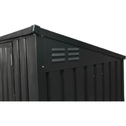 Cet abri mĂ©tallique est prĂ©vu pour accueillir deux poubelles de 240L. RĂ©alisĂ© en tĂŽle galvanisĂ©e dâune Ă©paisseur de 0,3mm trĂšs durable, robuste et rĂ©sistant aux intempĂ©ries. Le revĂȘtement de qualitĂ© ne craint pas les rayures, en couleur de gris anthracite. Conçu pour une utilisation en extĂ©rieur, ce modĂšle trĂšs robuste possĂšde un cadre en acier avec renforts diagonaux en profilĂ©s dans les coins.