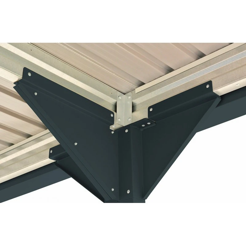 Pour évacuer les eaux de pluie, le carport en métal Duramax dispose de gouttières. Vous pourrez, si vous le désirez, connecter des descentes de gouttières aux connecteurs prévus à cet effet. Les vis d’ancrage, également incluses dans le pack, vous permettront d’obtenir une fixation optimale au sol et une grande stabilité. Toutes les pièces d’assemblage sont numérotées ce qui facilitera le montage de votre carport en métal Duramax de 15,58m².