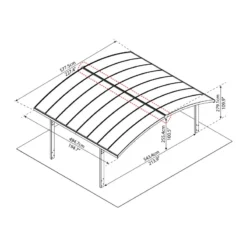 Ce carport double Arizona™ 5000 Breeze de Canopia by Palram, autoportant, se compose de deux modules pouvant être unis selon deux configurations. Lorsqu’ils sont assemblés par le point le plus haut, ils forment une arche de grandes dimensions (577,5×494,7cm), délimitée par les poteaux qui se situent à l’extérieur.