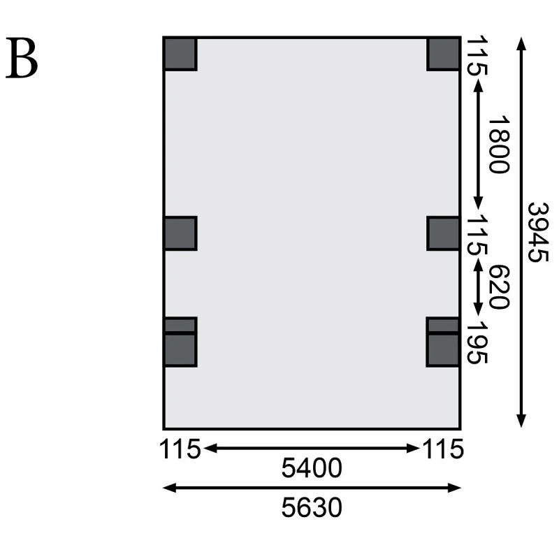 Dimensions extérieures (LxP) : 563×284,5cm