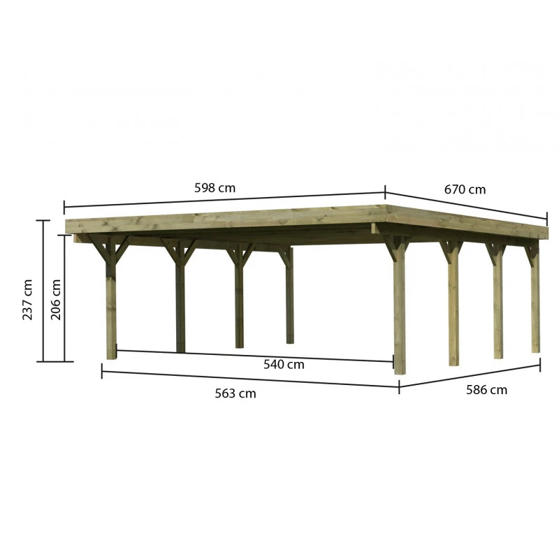 Simple et tendance, le carport double en bois de la marque Karibu vous offrira un espace couvert de 40,2m² et un large passage de 540cm assez suffisants pour vos voitures familiales. La teinte naturelle s’intégrera parfaitement dans votre extérieur pour un look harmonieux.