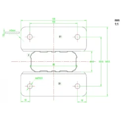 . Section des pieds avec les pattes de fixation : 15,2×13,7cm