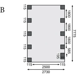Dimensions intérieures (LxP) : 250×754,5cm