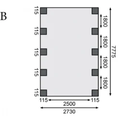 Dimensions intérieures (LxP) : 250×754,5cm