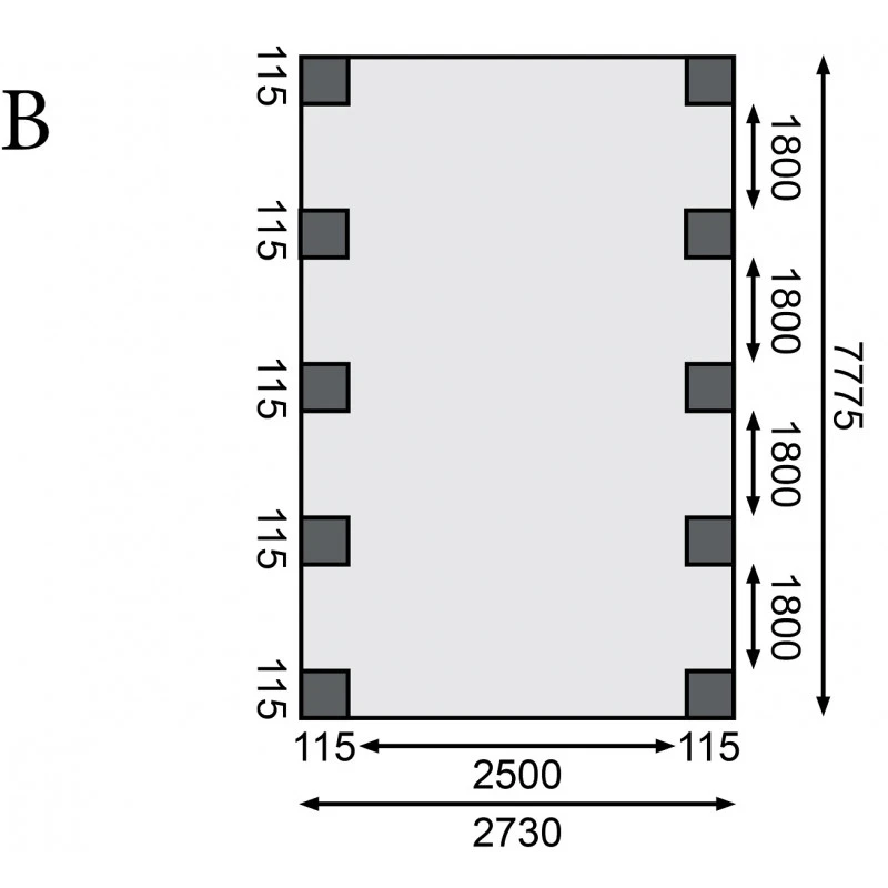 Dimensions extérieures (LxP) : 273×777,5cm