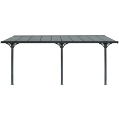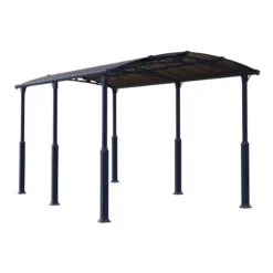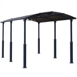 L’avis du spécialiste sur le carport en bois autoclave 26,9m², toit en PVC gris et deux poteaux en arc – KARIBU :