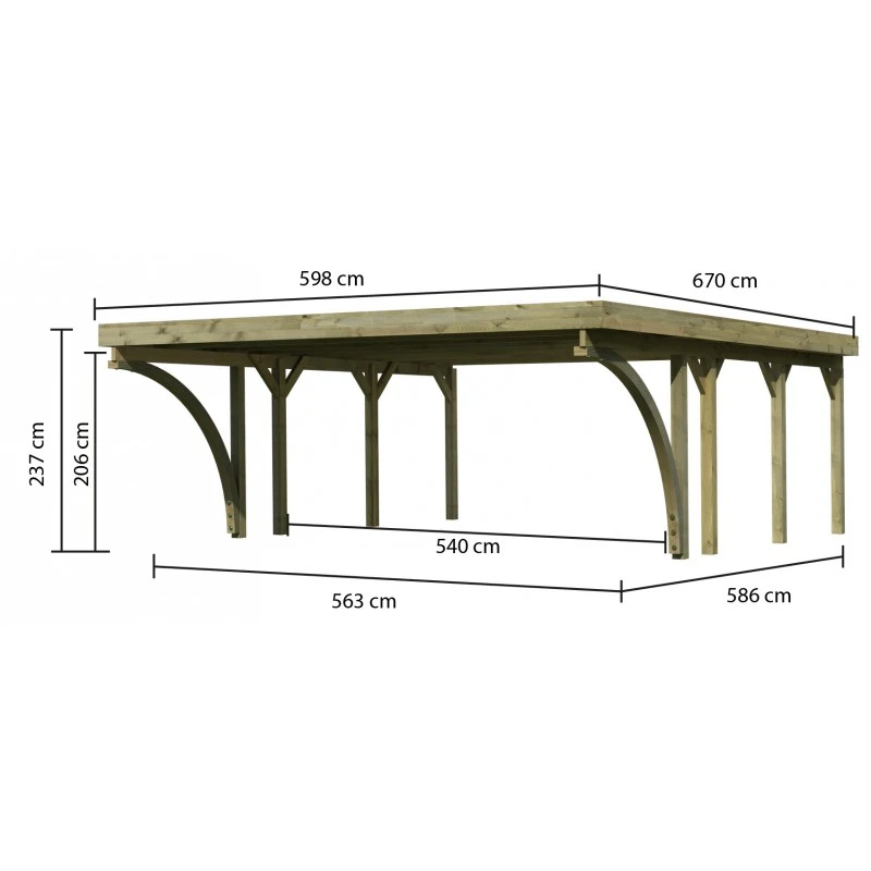 Spacieux, fonctionnel et tendance, le carport en bois 40,2m² de la marque Karibu vous séduira par ses deux arcs en entrée qui lui confèrent un look très accueillant. Adapté pour abriter vos 2 voitures familiales ou votre salon de jardin, il s’intégrera parfaitement dans votre extérieur grâce à sa teinte naturelle.