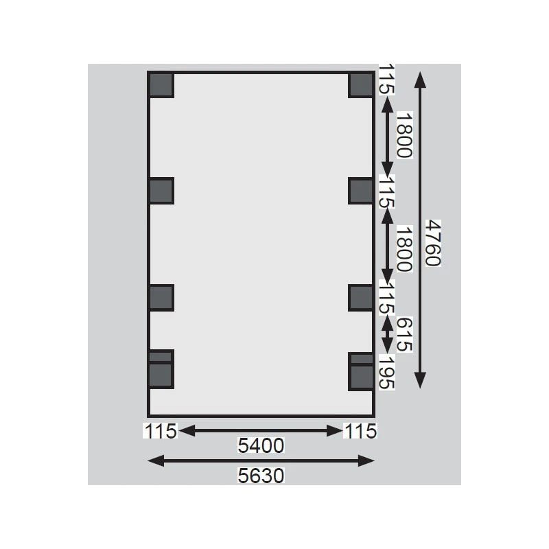 Dimensions extérieure poteaux : L.563xP.476cm