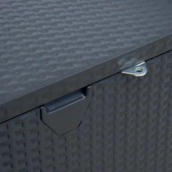 Ce coffre en métal robuste ne demande aucun entretien est conçu pour une utilisation durable. Ce coffre aux dimensions de 132x70x62cm a une capacité de 509L et est entièrement imperméable. Il présente un aspect tressé et s’intègrera harmonieusement dans tout type décoratif, sa couleur gris anthracite s’accorde avec une large gamme de tonalités.