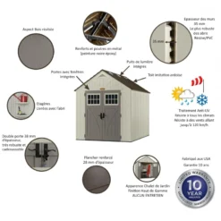 Il offre de multiples combinaisons de stockage. Vous pourrez vous en servir pour ranger votre coussinerie de mobilier de jardin, ou encore votre matĂ©riel de jardinage et de bricolage.Â