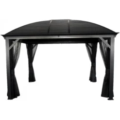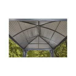 Garantie 10 ans, cette pergola de jardin Sojag possÚde une structure durable en aluminium et un toit en acier galvanisé. Grùce à la visserie en acier inoxydable, le démontage de la tonnelle en hiver sera inutile ce qui vous fera gagner du temps et des efforts.