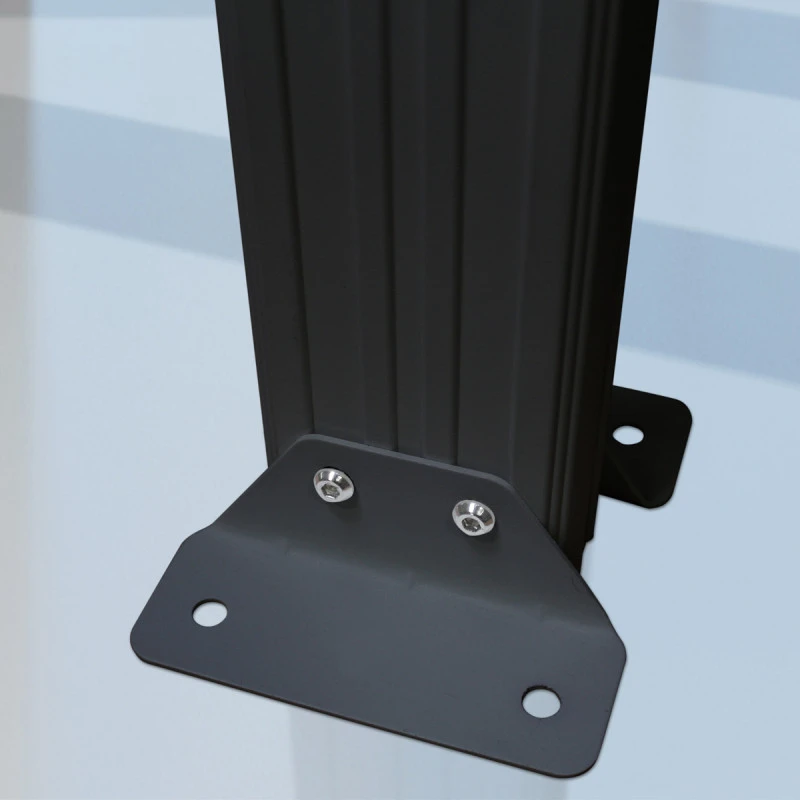 La pergola est livrĂ©e avec une notice de montage dĂ©taillĂ©e et des patines pour la fixation des poteaux sur tout type de support. Ce produit au design Ă©lĂ©gant et Ă©purĂ© sâintĂ©grera dans une large gamme dâamĂ©nagements extĂ©rieurs et dâapparences de façades. Il bĂ©nĂ©ficie dâune garantie de 2 ans.