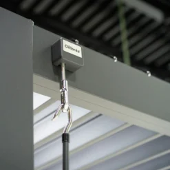 La toiture est divisĂ©e en 2 parties, chacune Ă©quipĂ©e d’une manivelle pour orienter les lames Ă votre convenance. Ainsi, un cĂŽtĂ© de la pergola pourra garder les lames fermĂ©es pour apporter de l’ombre Ă vos convives pendant que l’autre cĂŽtĂ© sera ouvert pour les amoureux du soleil !