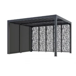 Côté esthétique, ce modèle de pergola bioclimatique en alu anthracite Habrita est doté de 5 panneaux moucharabieh en acier époxy ornés de formes végétales. Maintenus par 4 poteaux et fixés au sol et à la structure, ils sont solides et stables. Pour un confort optimal, 2 panneaux de ventelles latérales sont fournis pour le côté de 3m. Ainsi, vous aurez une pergola chic et tendance qui ne passera pas inaperçue dans votre extérieur.