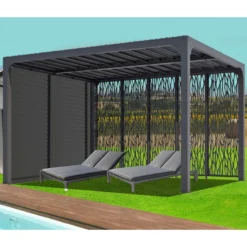 L’avis du spécialiste sur la pergola bioclimatique alu anthracite 10,80m² toit avec lames ovales alu + ventelles latérales côté 3m + 5 panneaux moucharabieh – HABRITA :