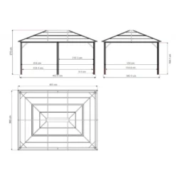 La toiture est constituĂ©e de panneaux solides en polycarbonate Ă doubles parois de 8mm dâĂ©paisseur teintĂ©s gris. Ces panneaux rĂ©sistent au rayonnement UV et sont parfaitement hermĂ©tiques. Ils sont conçus pour supporter une charge de neige de 125kg/mÂČ ce qui vous dispensera de dĂ©monter le gazebo pendant la saison hivernale. Lâinstallation est aisĂ©e, avec un outillage basique, et se rĂ©alise Ă deux personnes en environ 4 Ă 5 heures sur sol plat. Cette tonnelle peut ĂȘtre montĂ©e sur sol en bĂ©ton, plots ou dalle, sur terrasse en bois ou sur dalles.