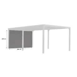 Cette pergola Thermauvent de 10,67mÂČ dispose dâune paroi Ă©quipĂ©e de lames orientables mobiles Ă la façon dâun store vĂ©nitien. Selon lâinclinaison des lames, elle peut ĂȘtre entiĂšrement obstruĂ©e pour vous protĂ©ger du soleil, du vent ou des regards.