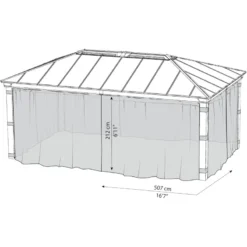 Chaque pan de la moustiquaire est équipé de fermetures éclair pour les unir entre eux, protégeant votre tonnelle de toute incursion d’insectes. Cette moustiquaire, en plus de son aspect fonctionnel, apportera un joli cachet étoffé à votre gazebo Dallas.