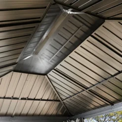 Cette magnifique pergola autoportante Messina couvre plus de 10m² pour accueillir un salon de jardin ou pourquoi pas un spa ou un jacuzzi. Elle est réalisée en aluminium pour la structure et en acier galvanisé pour la double toiture.
